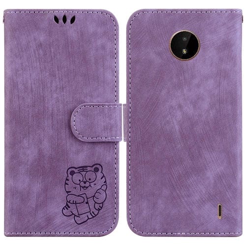 Funda de Cuero con Relieve Little Tiger para Nokia C20 y C10 (Púrpura)