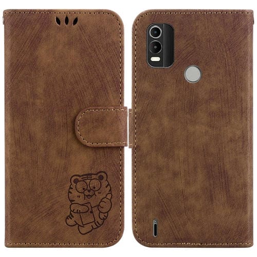 For Nokia C21 Plus Little Tiger Embossed Leather Phone Case(Brown)