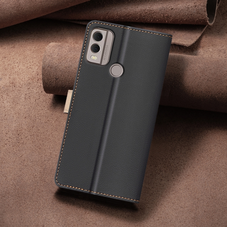 Funda de Cuero Antirrobo RFID para Nokia C22 a Juego de Colores (Negro)