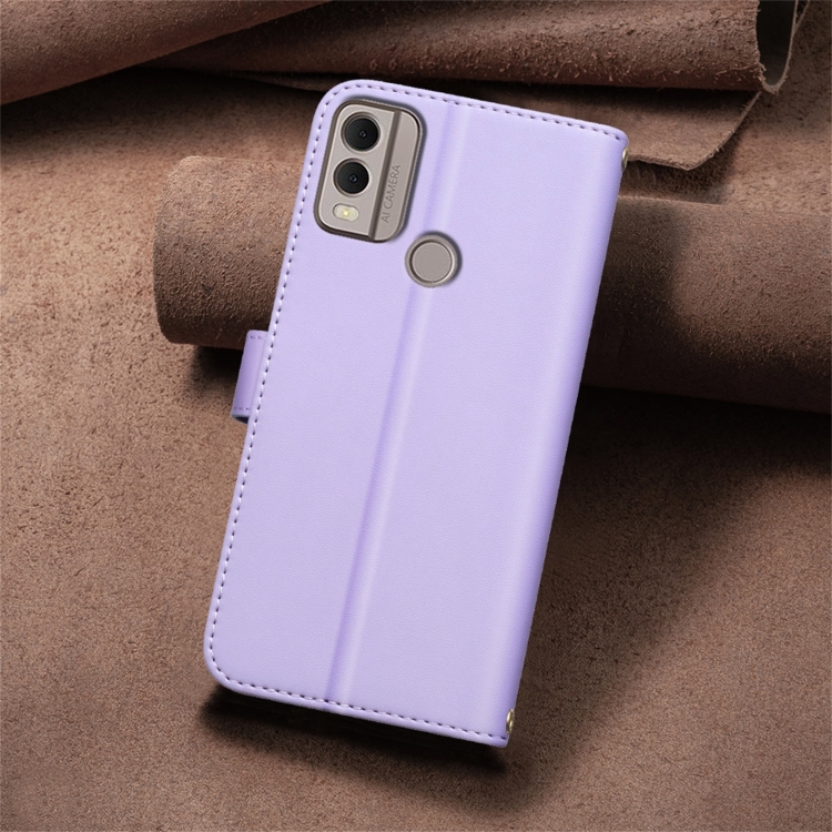 Funda de Cuero para Nokia C22 con Textura Cuadrada (Púrpura)