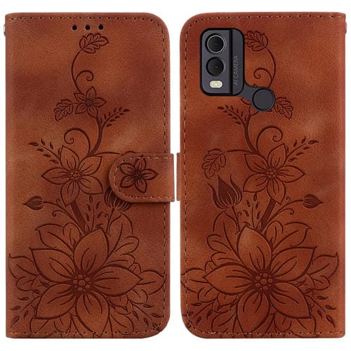 For Nokia C22 Lily Embossed Leather Phone Case Cover(Brown)