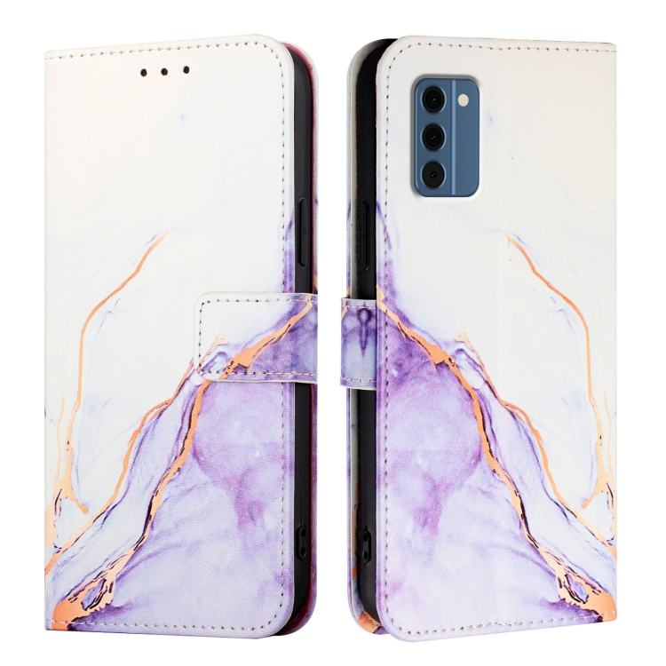 Funda para Teléfono Nokia C300 Pt003 de Cuero con Tapa y Patrón de Mármol (Blanco y Morado)