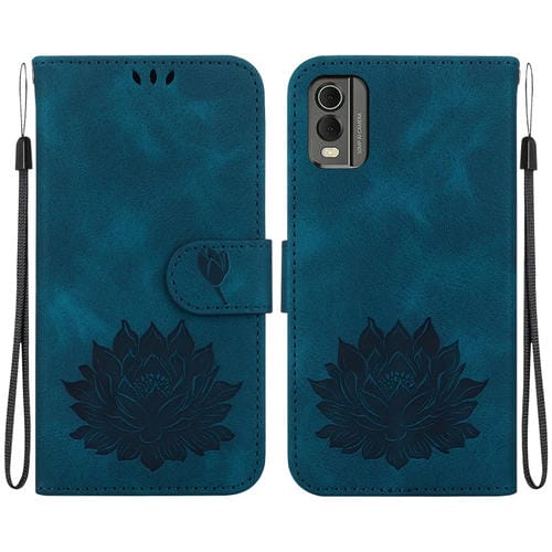 Funda de Cuero para Nokia C32 con Relieve de Loto (Azul Oscuro)