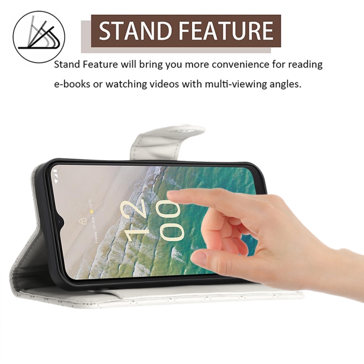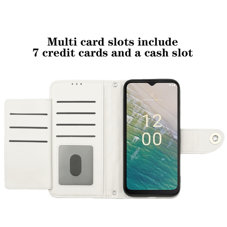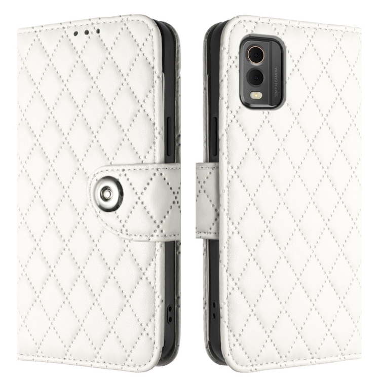 Funda de Cuero para Nokia C32 con Tapa, Textura Rómbica y Cordón (Blanco)