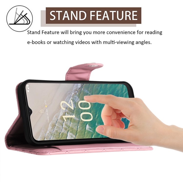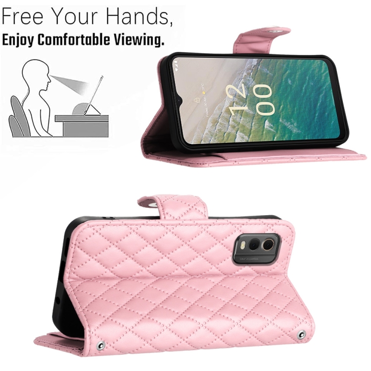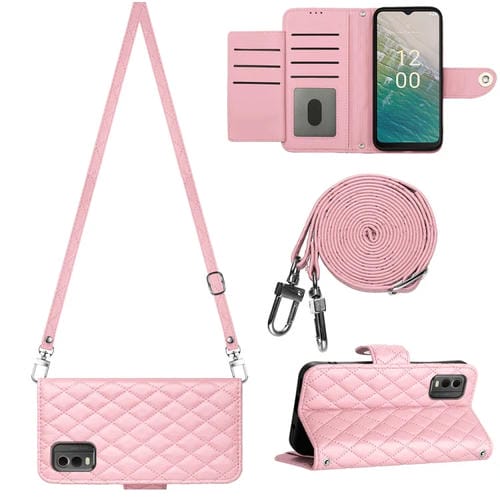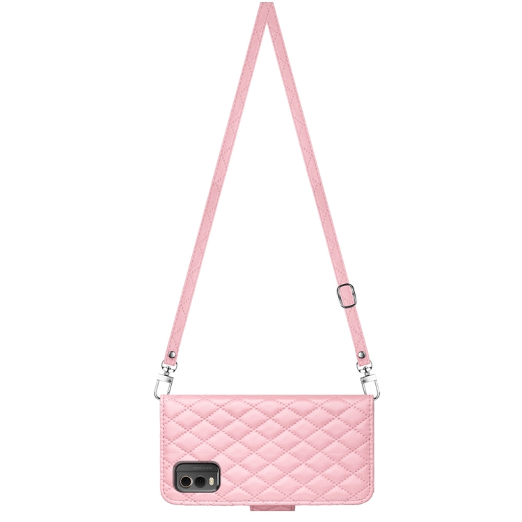 Funda de Cuero para Nokia C32 con Tapa, Textura Rómbica y Cordón Largo (Rosa)
