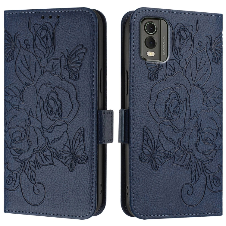 Funda de Cuero Antirrobo RFID para Nokia C32 con Relieve (Azul Oscuro)