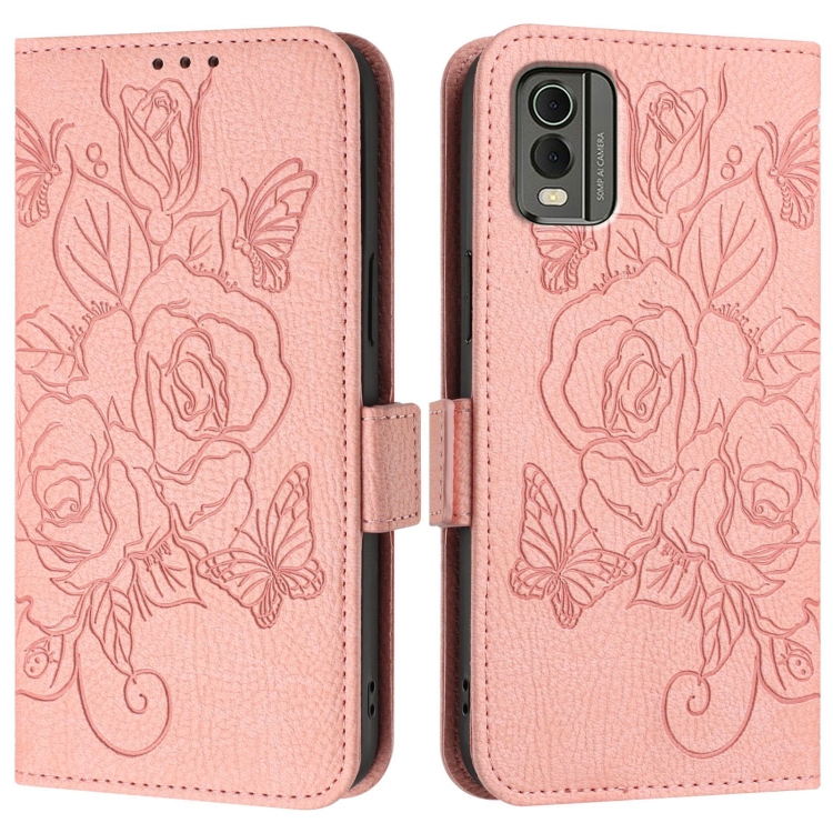 Funda de Cuero Antirrobo RFID para Nokia C32 con Relieve (Rosa)