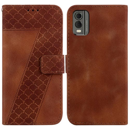 Funda de Cuero para Nokia C32 en Relieve Forma de 7 (Marrón)