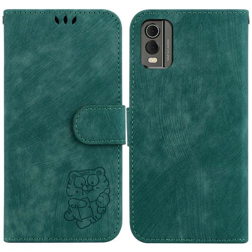 Funda de Cuero para Nokia C32 Little Tiger con Relieve (Verde)