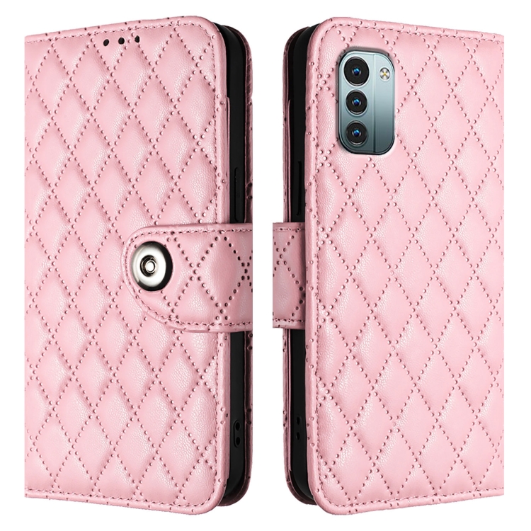Funda para Teléfono Nokia G11 / G21 con Tapa de Cuero Textura Rómbica y Cordón (Rosa)