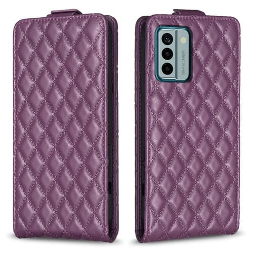 Funda de Cuero con Tapa Vertical para Nokia G22 Diamond Lattice (Púrpura Oscuro)