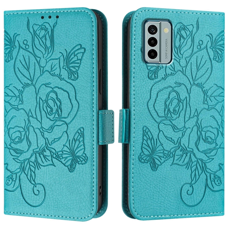 Funda de Cuero Antirrobo RFID para Nokia G22 con Relieve (Azul Claro)