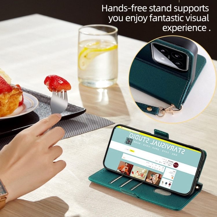 Funda de Cuero para Nokia G42 4G con Cadena Cruzada (Verde)