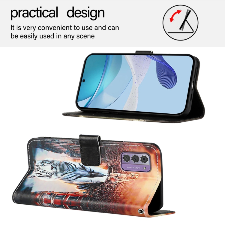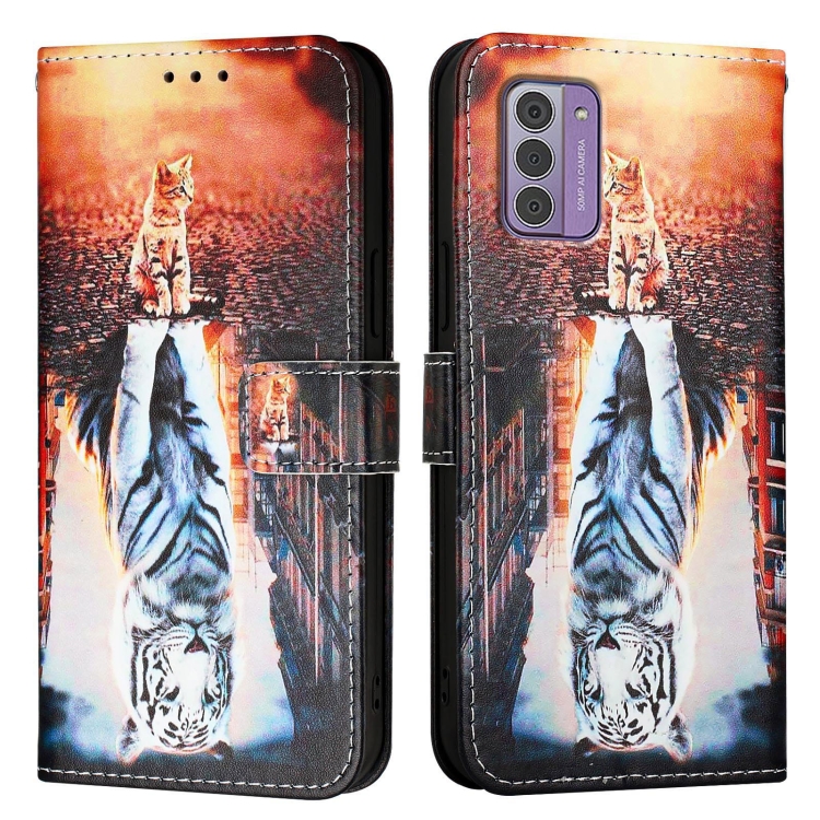 Funda para Nokia G42 / G310 de Cuero Tejido Liso con Dibujo de Gatos y Tigres