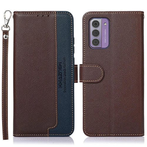Funda para Nokia G42 Khazneh con Textura Litchi Cuero y Protección RFID (Marrón)