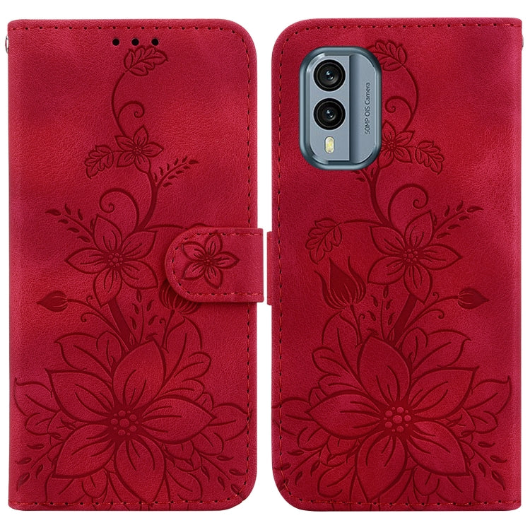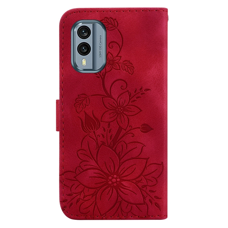For Nokia X30 Lily Embossed Leather Phone Case(Red)