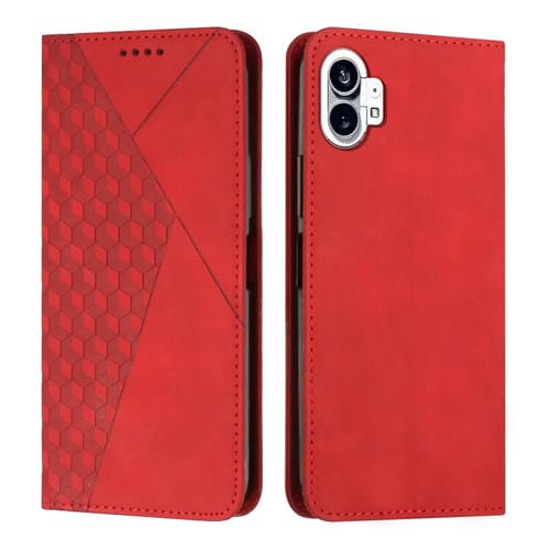 Funda Magnética para Teléfono Para Notar 1 Patrón Diamante Empalme Piel (Rojo)