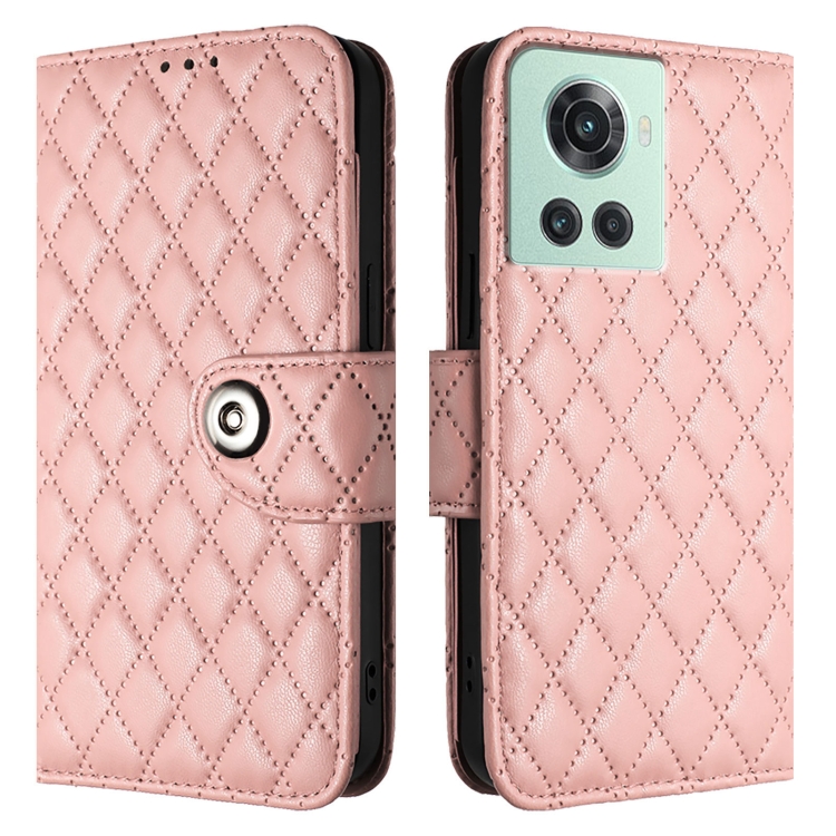 Funda de Cuero con Tapa y Cordón para OnePlus 10R Ace Rhombic Texture (Rosa Coral)