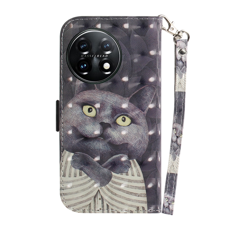 Funda de Cuero para OnePlus 11 con Tapa Horizontal y Diseño 3D (Hug Cat)