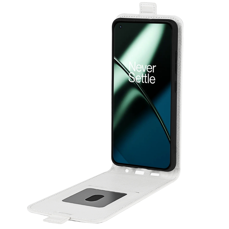 Funda Flip Vertical de Cuero para OnePlus 11 R64 con Textura (Blanco)