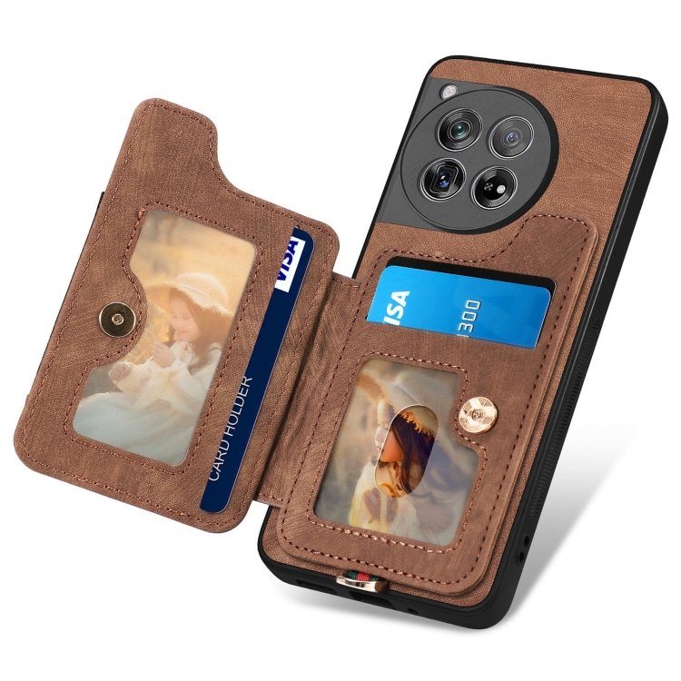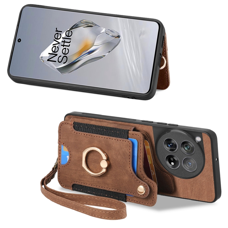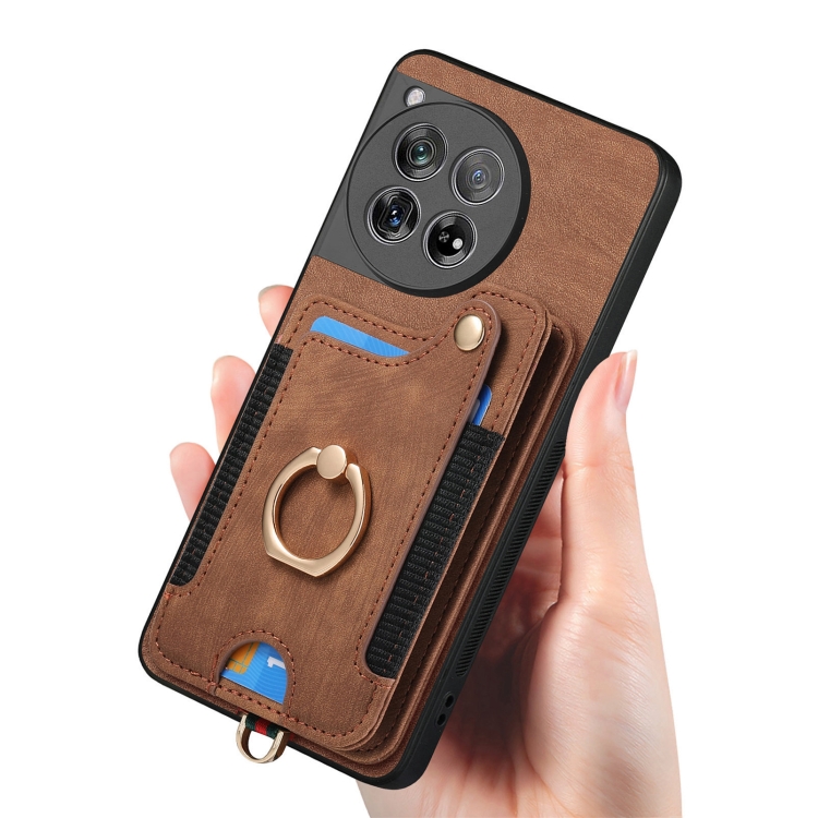 Funda para OnePlus 12 5G con Billetera Rfid y Anillo con Sensación de Piel Retro (Marrón)