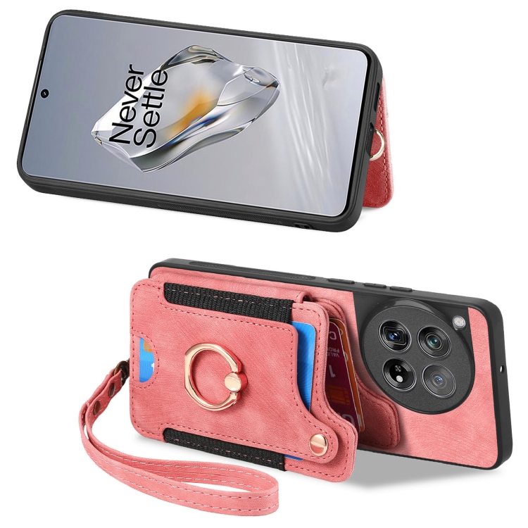 Funda para OnePlus 12 5G con Billetera RFID y Anillo con Sensación de Piel Retro (Rosa)