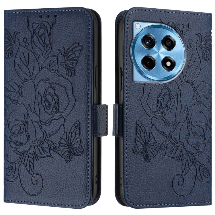 Funda para Teléfono OnePlus 12R 5G Cuero Antirrobo RFID con Relieve Rosa (Azul Oscuro)