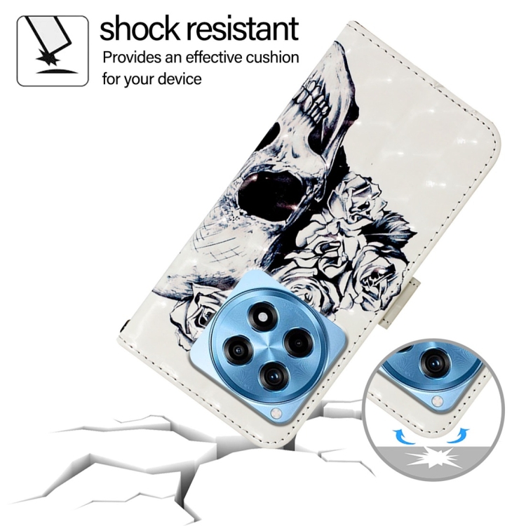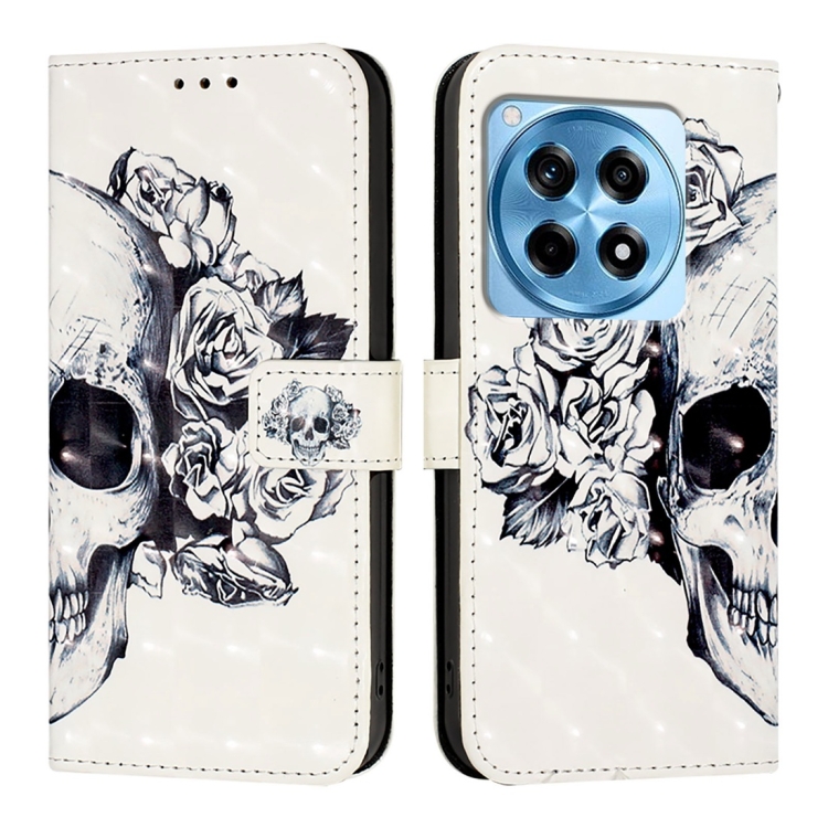 Funda para OnePlus 12R de Cuero con Tapa Horizontal y Pintura 3D (Calavera)