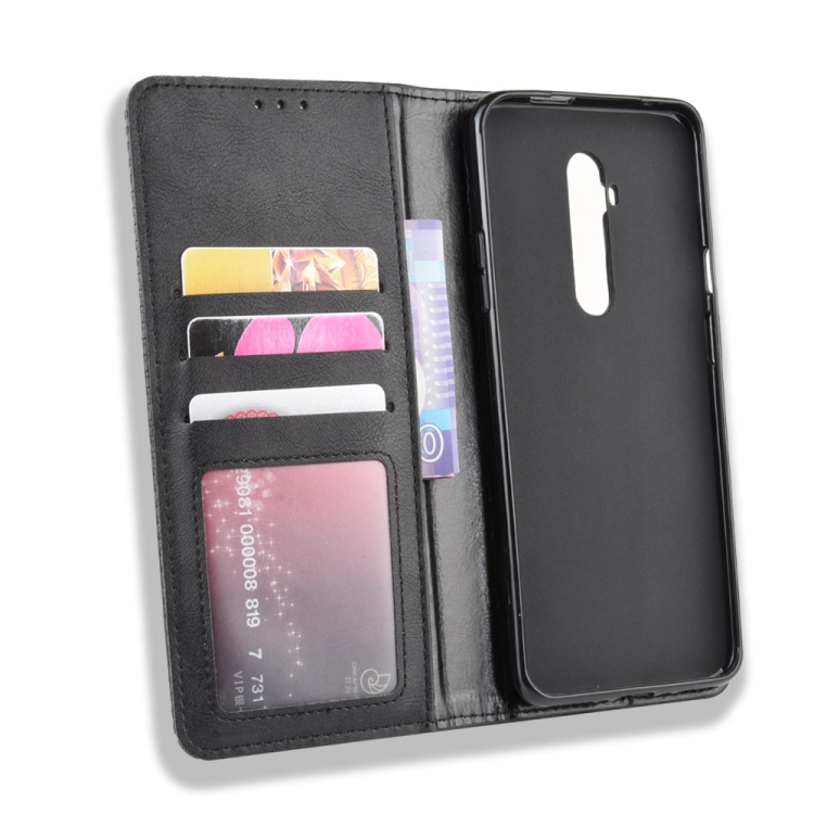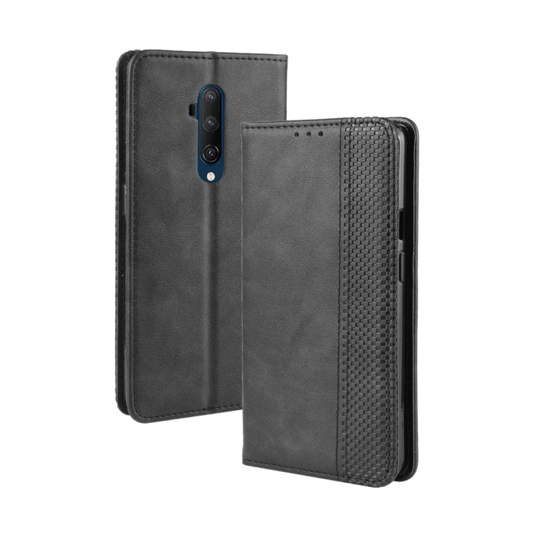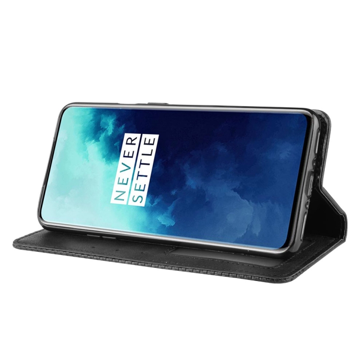 Funda de Cuero para OnePlus 7T Pro con Hebilla Magnética, Tapa Horizontal, Soporte, Ranuras para Tarjetas y Marco de Fotos (Negro)