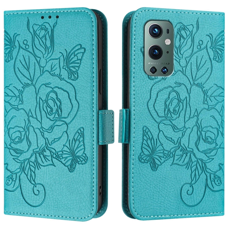 Funda de Cuero Antirrobo RFID para OnePlus 9 Pro con Relieve (Azul Claro)