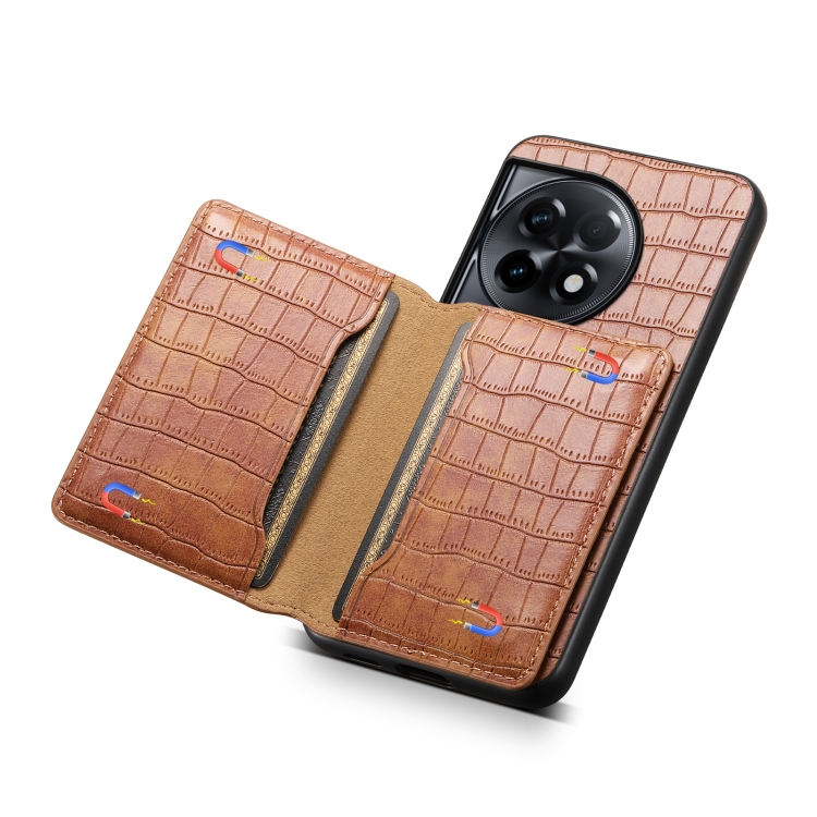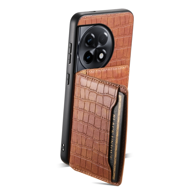 Funda para OnePlus Ace 2 Denior con Textura de Cocodrilo y Bolsa para Tarjetas (Marrón)