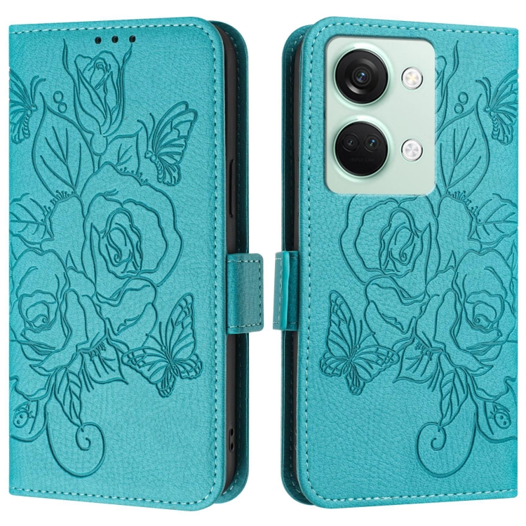 Funda de Cuero Antirrobo RFID para OnePlus Ace 2V Nord 3 con Relieve Rosa (Azul Claro)