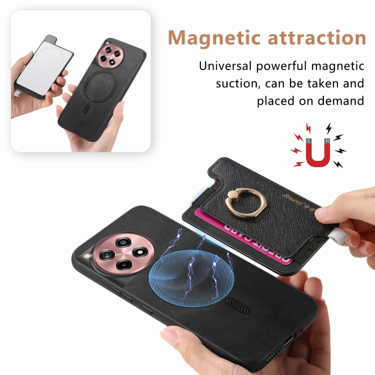 Funda para OnePlus Ace 3 5G Retro Magsafe PU con Contraportada (Negro)