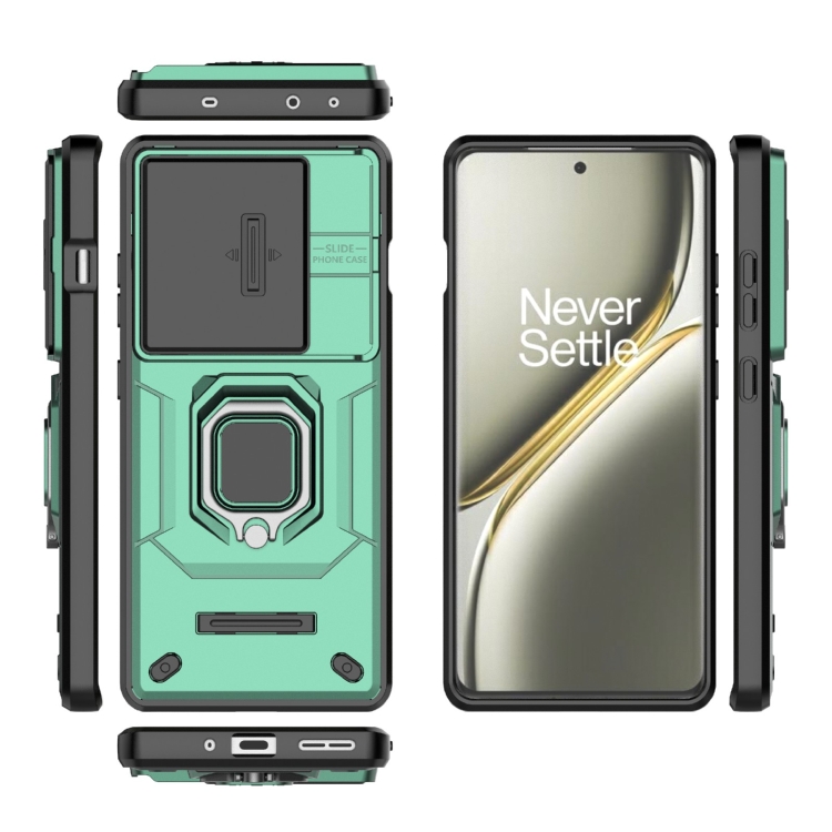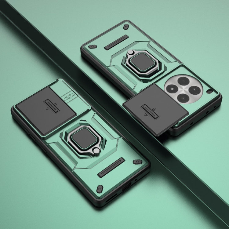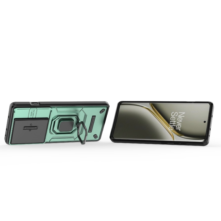 Funda para OnePlus Ace 3 Pro 5G Sliding Camshield TPU + PC a Prueba de Golpes con Soporte (Verde)