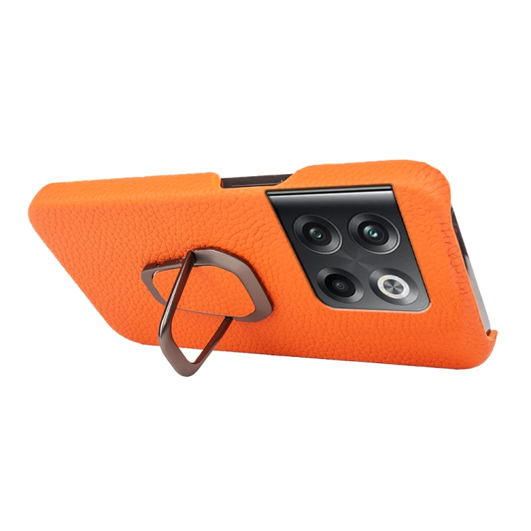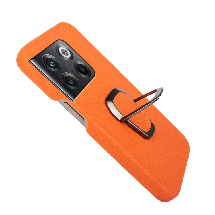 - 1x Funda de Cuero Genuino OnePlus Ace Pro 11T con Ring Holder y Textura Litchi (Amarillo)