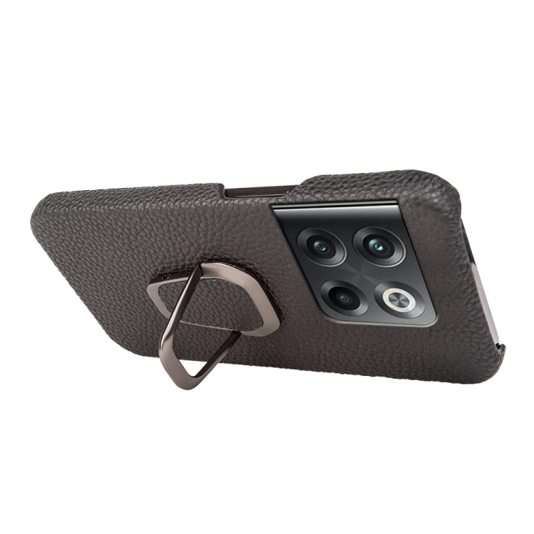 - 1x Funda de Cuero Genuino para OnePlus Ace Pro / 11T con Ring Holder y Textura Litchi (Negro)