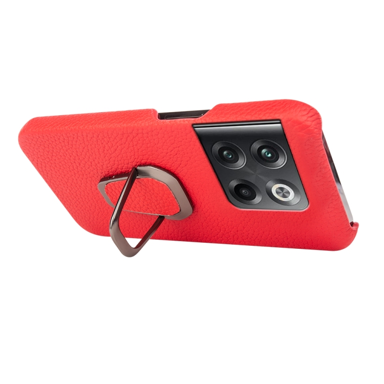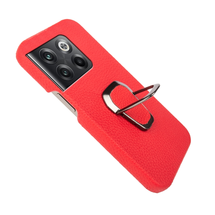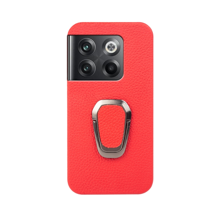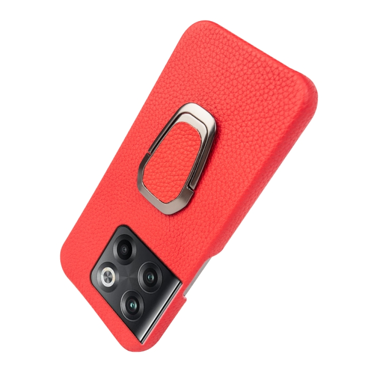 - 1x Funda de Cuero Genuino para OnePlus Ace Pro / 11T con Ring Holder y Textura Litchi (Rojo)