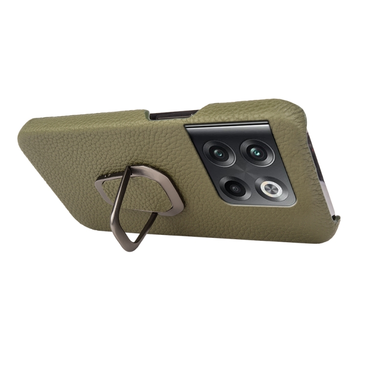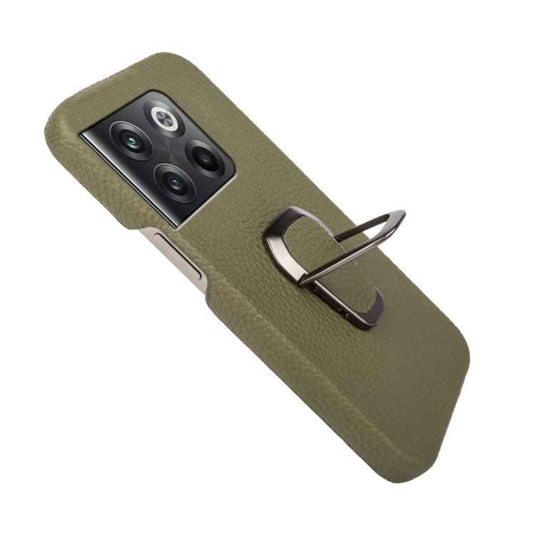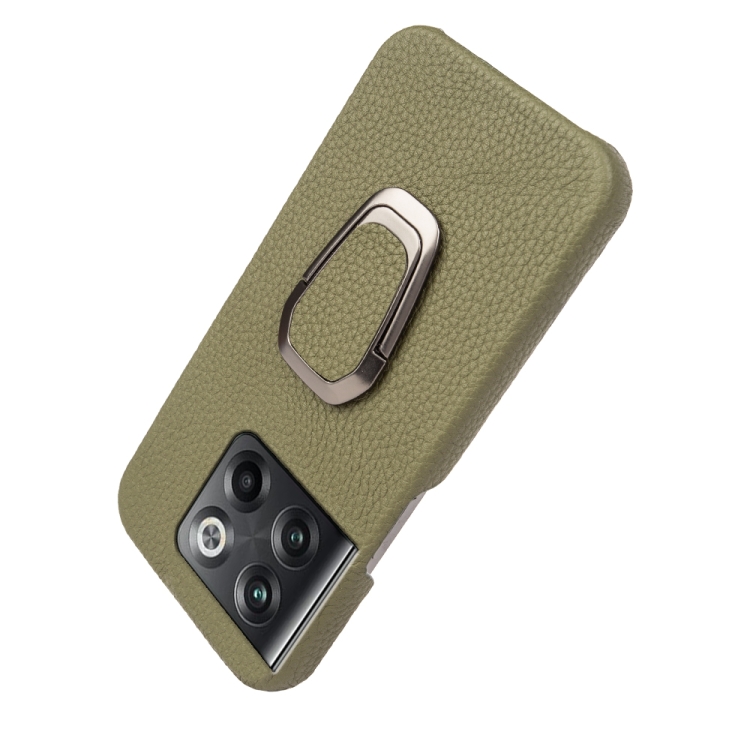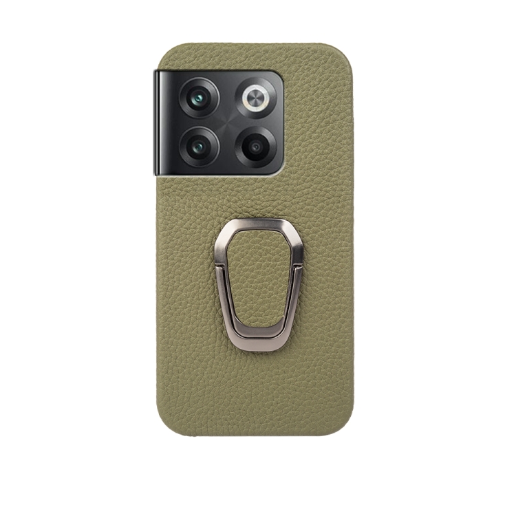 - 1x Funda de Cuero Genuino para OnePlus Ace Pro / 11T con Ring Holder y Textura Litchi (Verde)