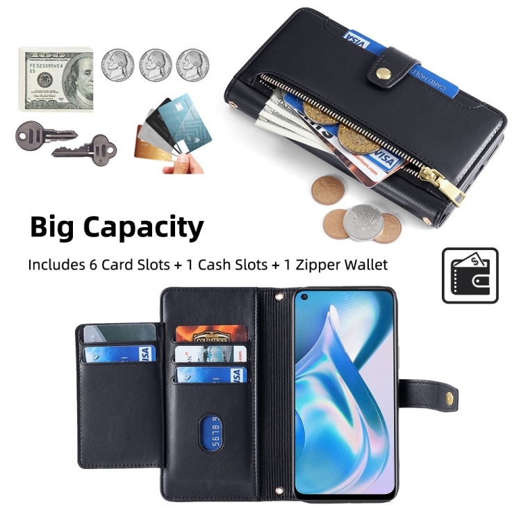 - Función cartera con múltiples ranuras y compartimento seguro con cremallera