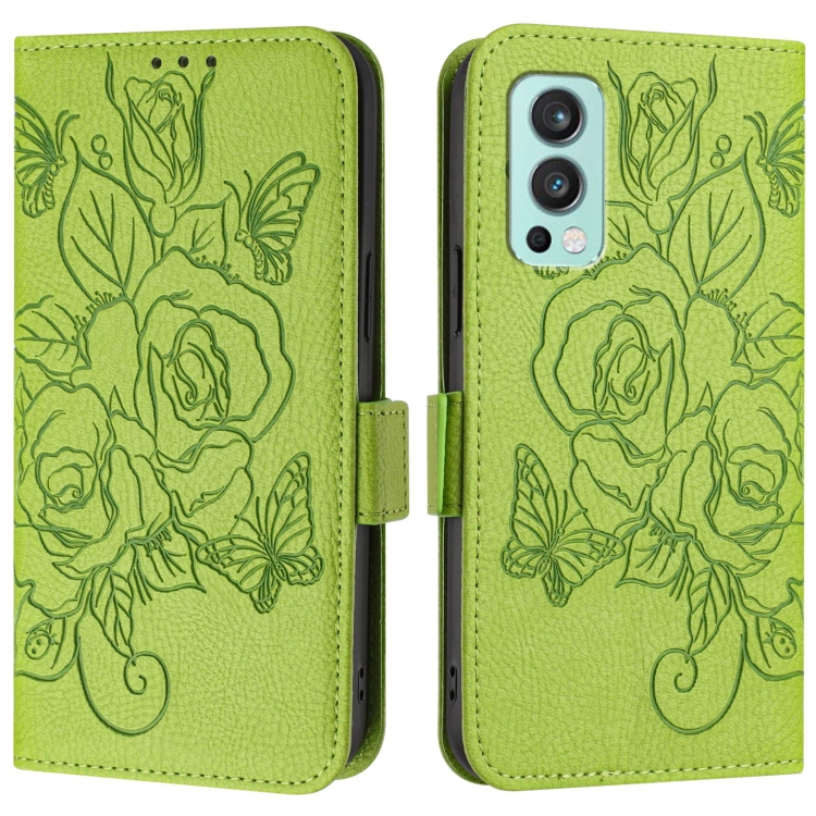 Funda de Cuero Antirrobo RFID para OnePlus Nord 2 con Relieve Rosa (Verde)