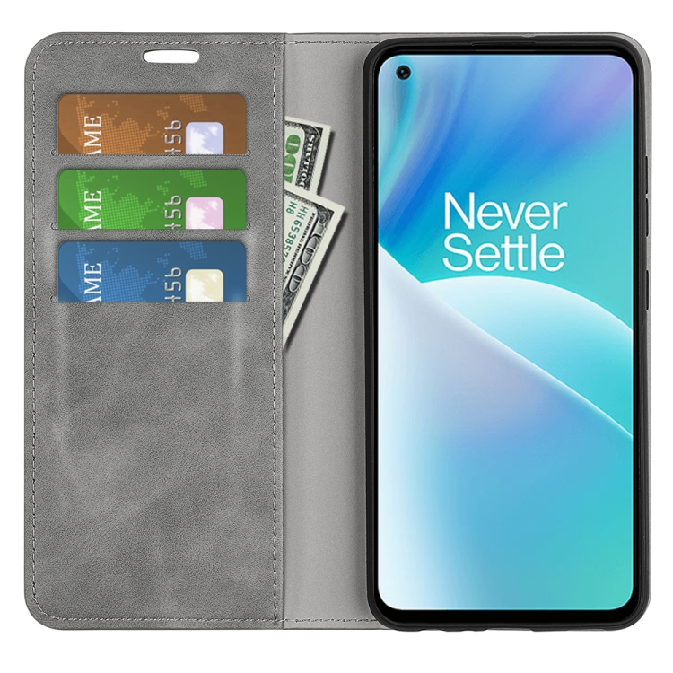 - 1x Funda Flip Leather Case para OnePlus Nord 2T 5G Retro-Skin con Suction (Gris)