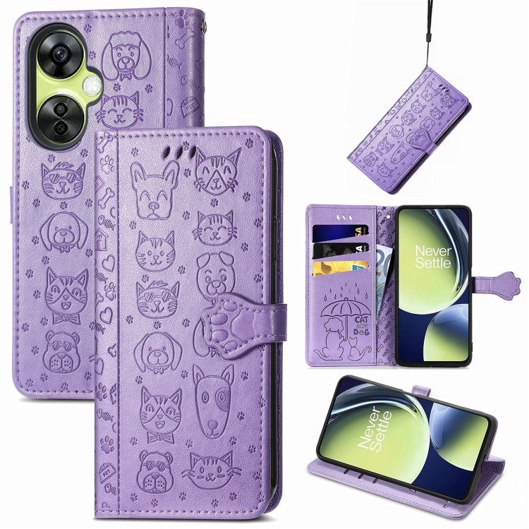 - 1x Estuche de Cuero En Relieve para OnePlus Nord CE 3 Lite CAT And Dog (Púrpura)