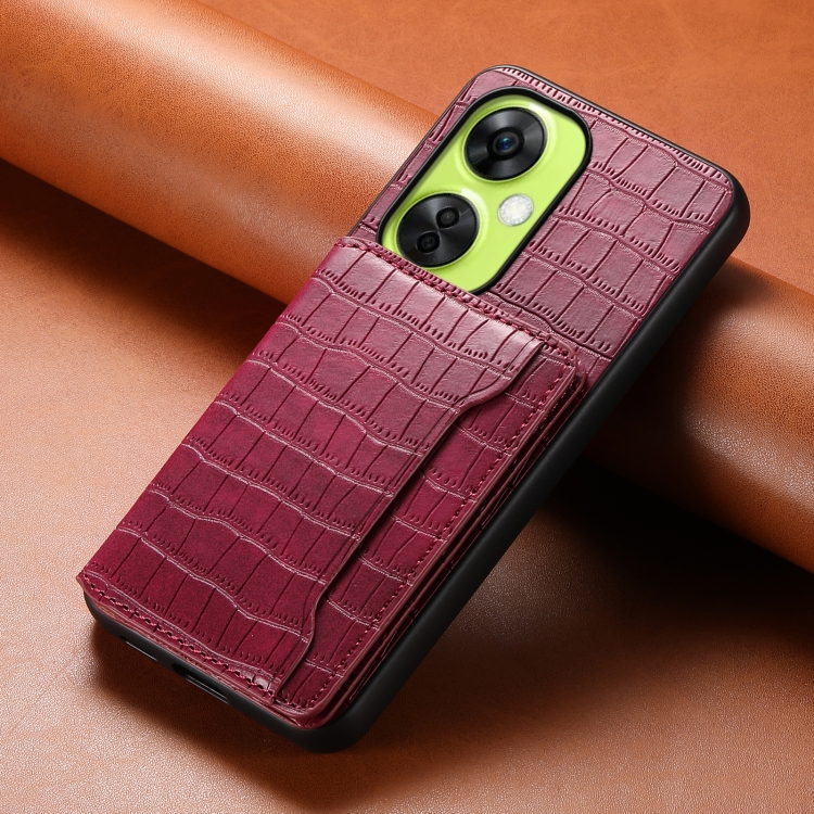 Funda para OnePlus Nord Ce 3 Lite Denior con Textura de Cocodrilo y Bolsa de Tarjeta (Rojo)
