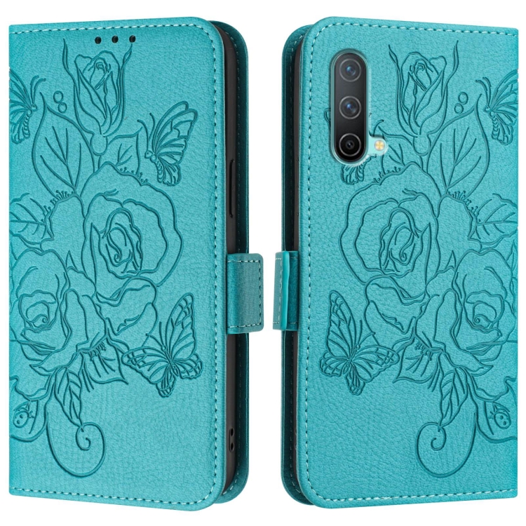 Funda de Cuero Antirrobo RFID para OnePlus Nord Ce 5G con Relieve (Azul Claro)