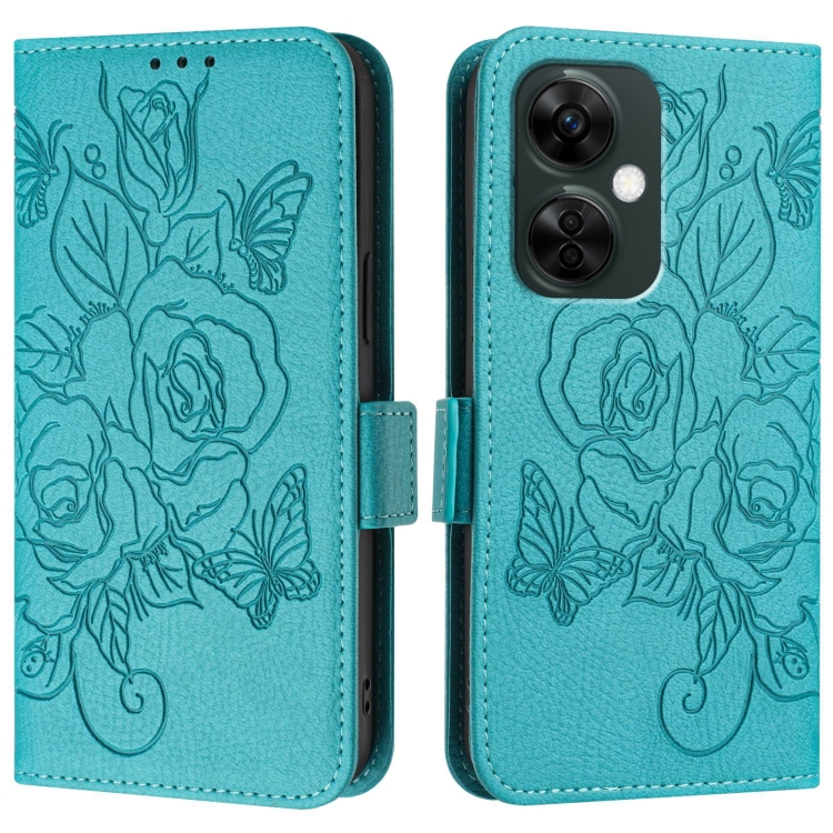 Funda de Cuero Antirrobo RFID para OnePlus Nord Ce3 Lite 5G y Nord N30 con Relieve Rosa (Azul Claro)