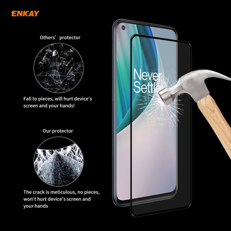 Protector de pantalla vidrio templado OnePlus Nord N10 5G Enkay Hat-Prince Full Glue 10 Uds (Transparente)