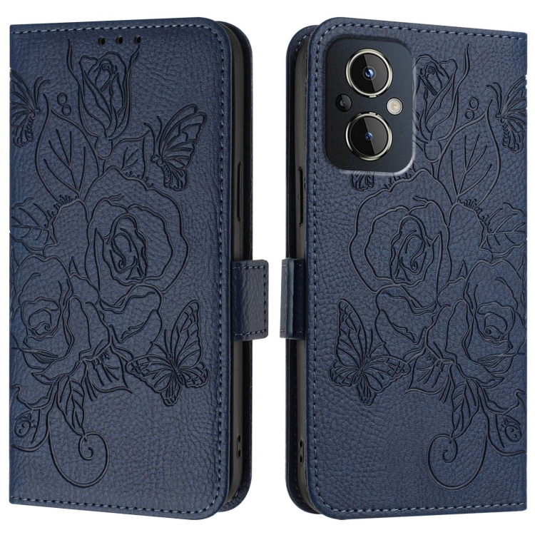Funda de Cuero Antirrobo RFID para OnePlus Nord N20 5G con Relieve Rosa (Azul Oscuro)