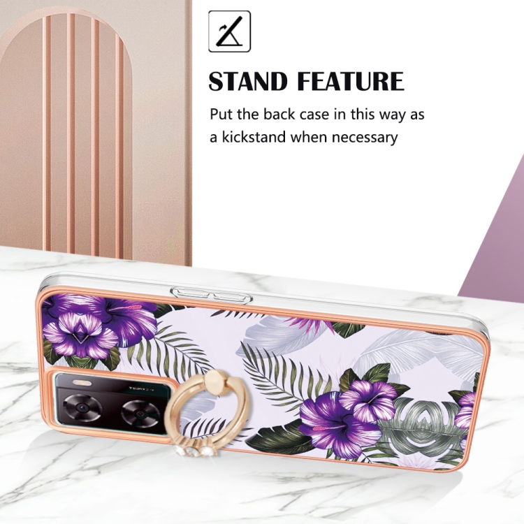 - 1x Funda TPU Galvanoplastia IMD con Anillo para OnePlus Nord N300 (Flor Púrpura)