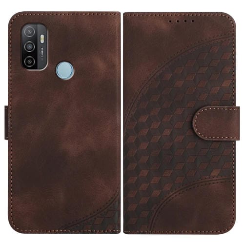 Para Oppo A53 4G / A32 4G / A53S 4G / A33 4G Yx0060 Funda de Cuero para Teléfono con Relieve y Cabeza de Elefante con Cordón (Café)