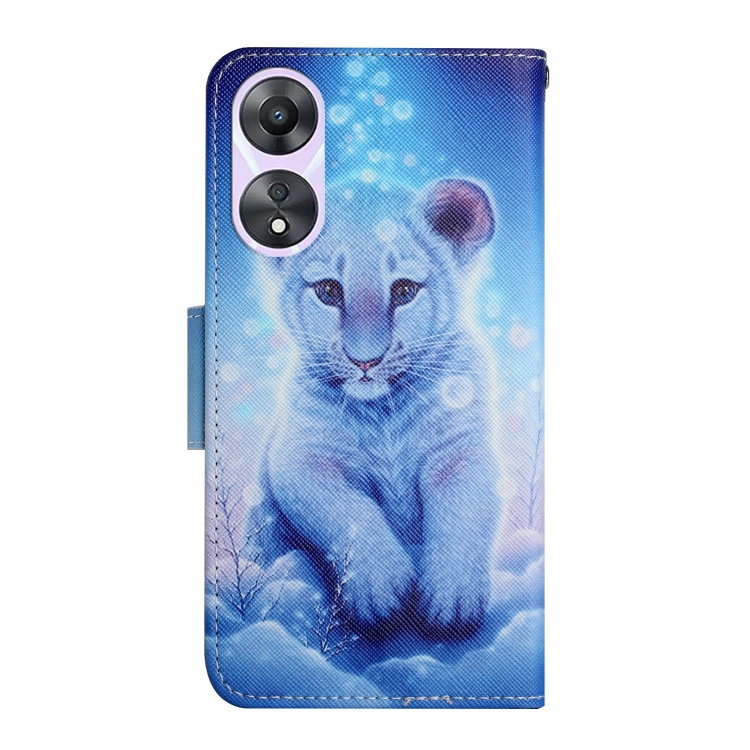 Para Oppo A58 4G Funda de Cuero para Teléfono con Patrón de Dibujo Coloreado (Pequeño Leopardo)